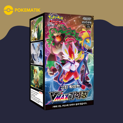 La Pokémon VMAX Rising Booster Box (S1A) est l’une des toutes premières extensions de l’ère Épée & Bouclier, introduisant les premiers Pokémon VMAX comme Pyrobut (Cinderace VMAX), Gorythmic (Rillaboom VMAX) et Lézargus (Inteleon VMAX).